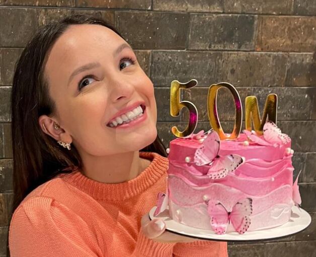“Se os Larináticos são os melhores do mundo? Com certeza! Hoje a Larissa Manoela recebeu o presente de 50 milhões que vocês fizeram com todo amor e carinho. Presentes entregues com sucesso”, diz a legenda da imagem em que a atriz pode ser vista com um bolo decorado celebrando a conquista.