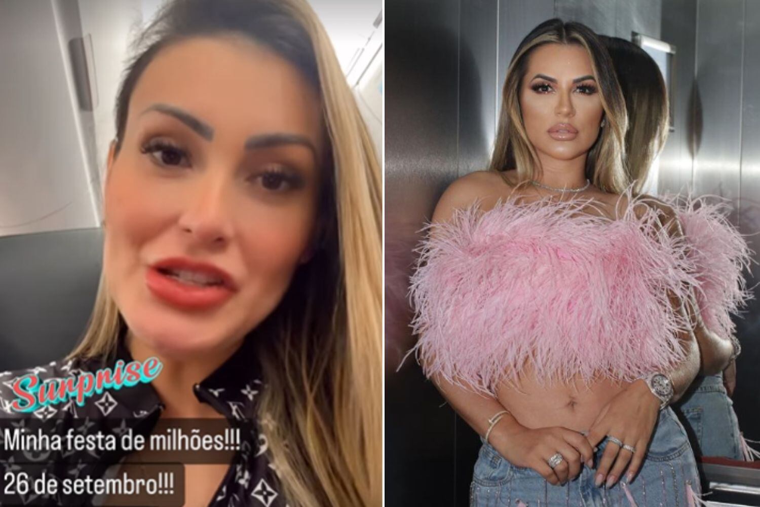 “Inclusive, queria deixar um recado para a Dra Deolane. Sei que você está com um corpo maravilhoso, top. Quero seu corpo novo lá na minha festa, hein, junto comigo”, disse Andressa, que está em viagem ao Chile.