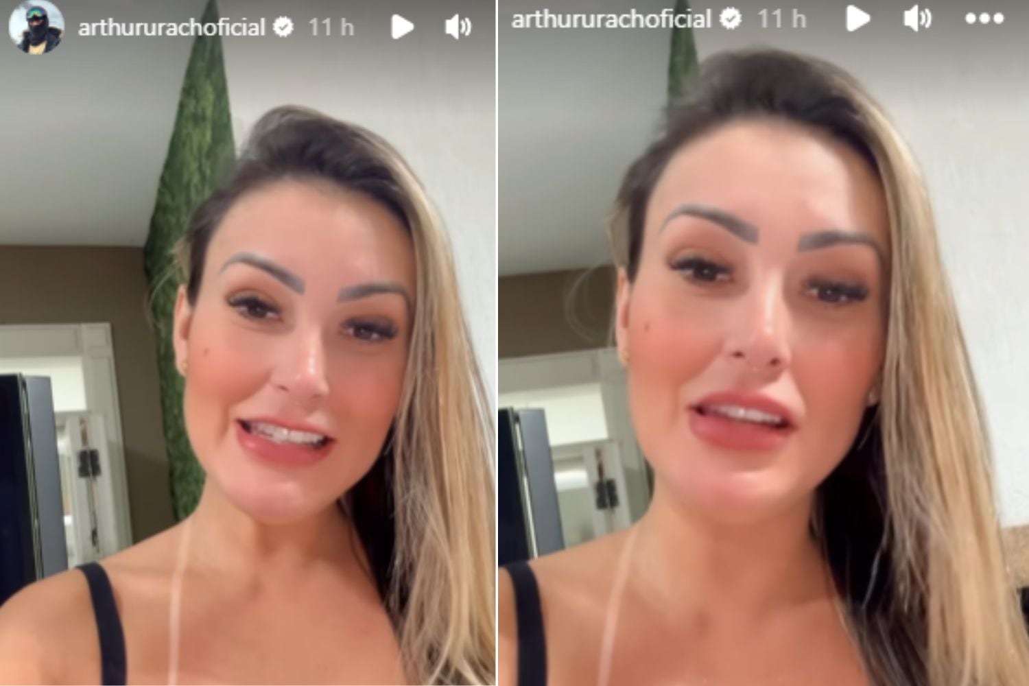 A modelo Andressa Urach, de 35 anos, que teve seu perfil oficial no Instagram retirado do ar desde a madrugada de segunda-feira (11), usou a conta do seu filho, Arthur Urach, de 18, para se pronunciar sobre o assunto. Segundo ela, a página foi derrubada após muitas denúncias, mas destacou que a situação já está em “análise” e garantiu que está “em paz”.