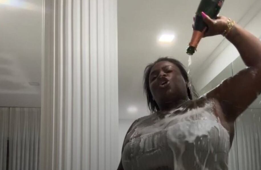 Além do banho de champanhe, Jojo Todynho disse que a inveja de Alessandra Cariúcha nunca vai conseguir abalá-la e deu um recado daqueles: “Quer falar de mim, tu fala, tua inveja não me abala, 15 minutinhos de fama não vai te levar a nada”.