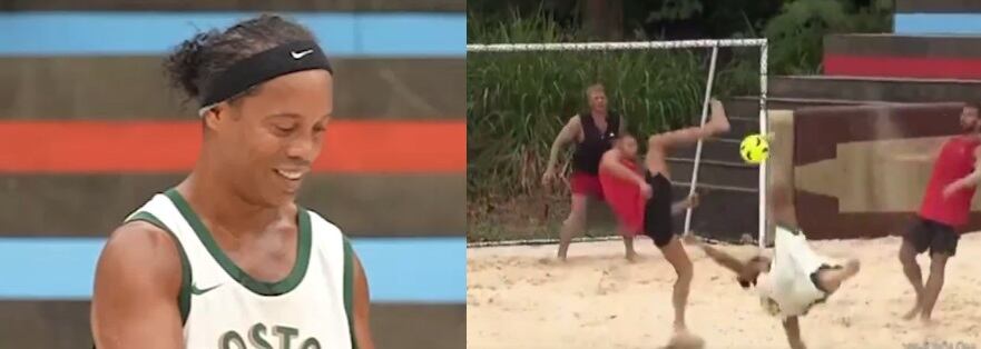 Veja o golaço de bicicleta que Ronaldinho Gaúcho fez no último episódio da temporada ‘All Star’ do reality: