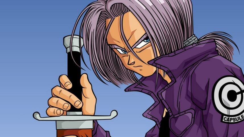 Trata-se de Trunks, o único saiyajin e Guerreiro Z sobrevivente do futuro, que viajou em uma máquina do tempo construída por Bulma, após a morte de Gohan.
