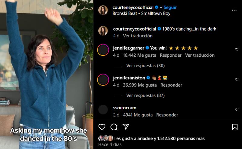 Nas suas recentes publicações no Instagram, Courtney Cox lembra-nos das vantagens de sair da zona de conforto e experimentar o corte shaggy em camadas que está fazendo sucesso, com uma franja aberta na diagonal que realça suas características faciais. Este detalhe é o que a faz parecer tão diferente, conferindo-lhe muita frescura e juventude.