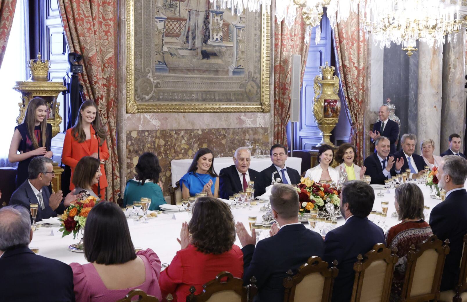 Após a tradicional recepção no Salão de Gala do Palácio Real e a entrega das condecorações da Ordem do Mérito Civil, Dom Felipe, Dona Letizia, a princesa Leonor e a infanta Sofia sentaram-se ao lado dos demais convidados antes de iniciar o almoço. O Rei, com a intenção de destacar esta data tão significativa para ele e para a Coroa, preparou um brinde. O que ele não antecipava era a inesperada intervenção de suas filhas.