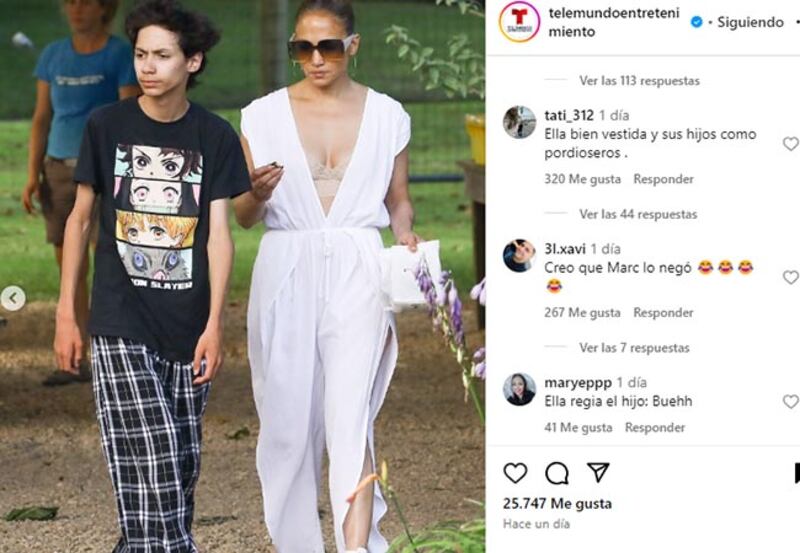 Jennifer López El hijo de la cantante fue criticado por su aspecto y su look (@telemundoentretenimiento/Instagram)