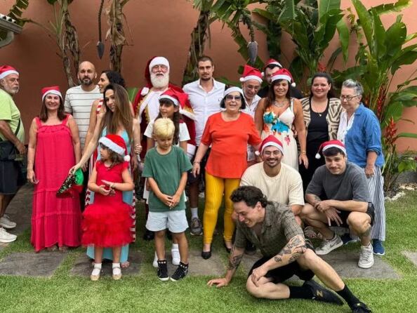 A festa reuniu familiares, incluindo o marido da atriz, Rafa Vitti, e a filha do casal, Clara Maria, de cinco anos. Em fotos publicadas, todos aparecem usando gorros de Papai Noel, em um clima descontraído e familiar.