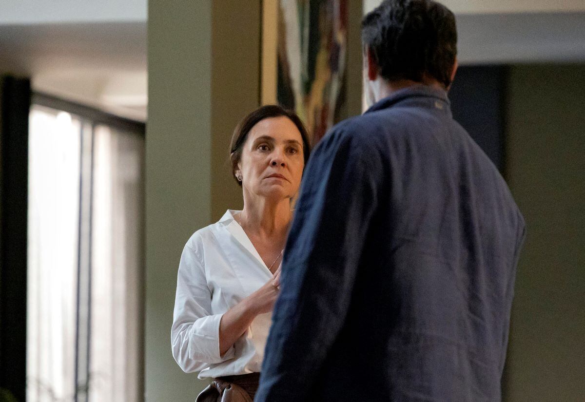 No capítulo de ‘Mania de Você’ de segunda-feira, 6 de janeiro, Mércia (Adriana Esteves) coloca as garras para fora e mostra ser uma sogra invasiva, chegando a invadir a noite de núpcias de Mavi (Chay Suede) e Luma (Agatha Moreira).