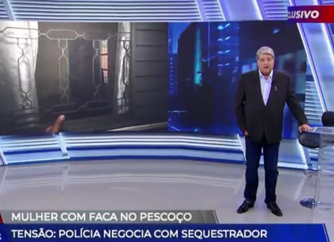 O sequestrador invadiu a residência da vítima e fez não apenas a mulher, mas também seu filho, uma criança de seis anos, reféns. Após duas horas, decidiu soltar o menino, mas continuou ameaçando a mãe com armas brancas. Durante a negociação, ele insistia que queria falar diretamente com o apresentador Datena e que sua segurança dependia da visibilidade do caso.