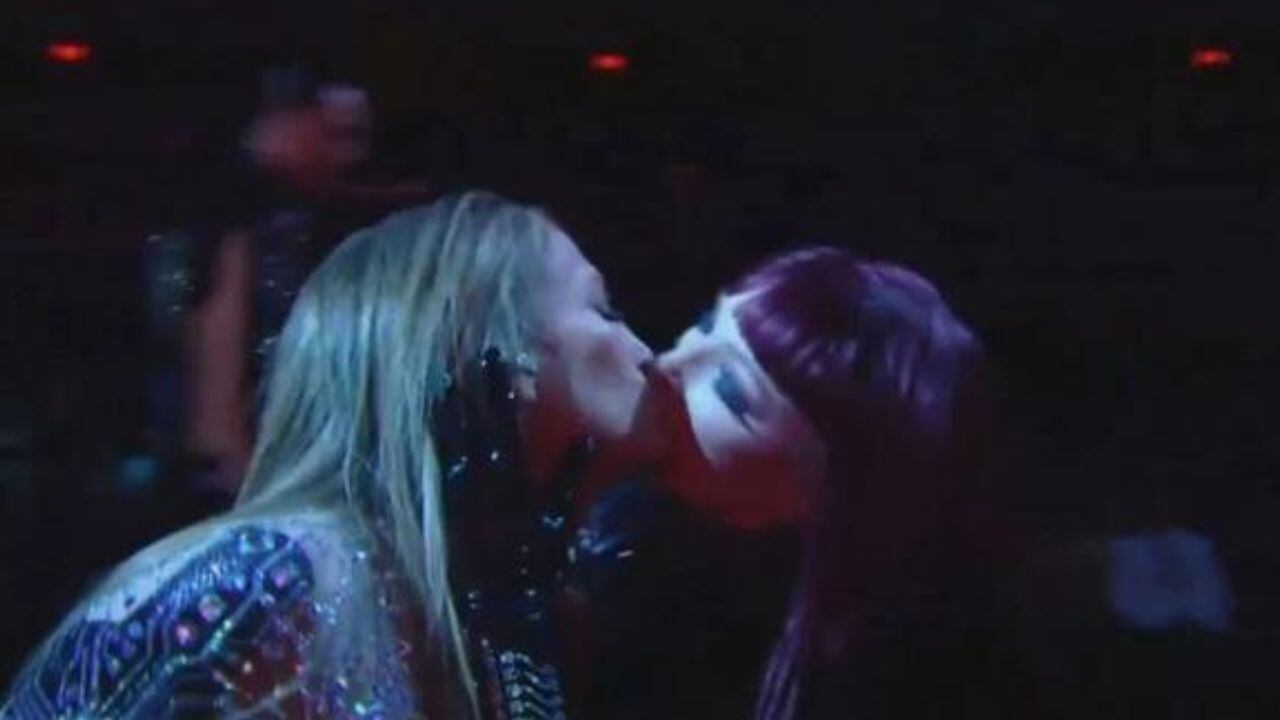E depois de apresentar seus maiores sucessos, a cantora surpreendeu a todos ao beijar na boca um dançarino e uma dançarina.