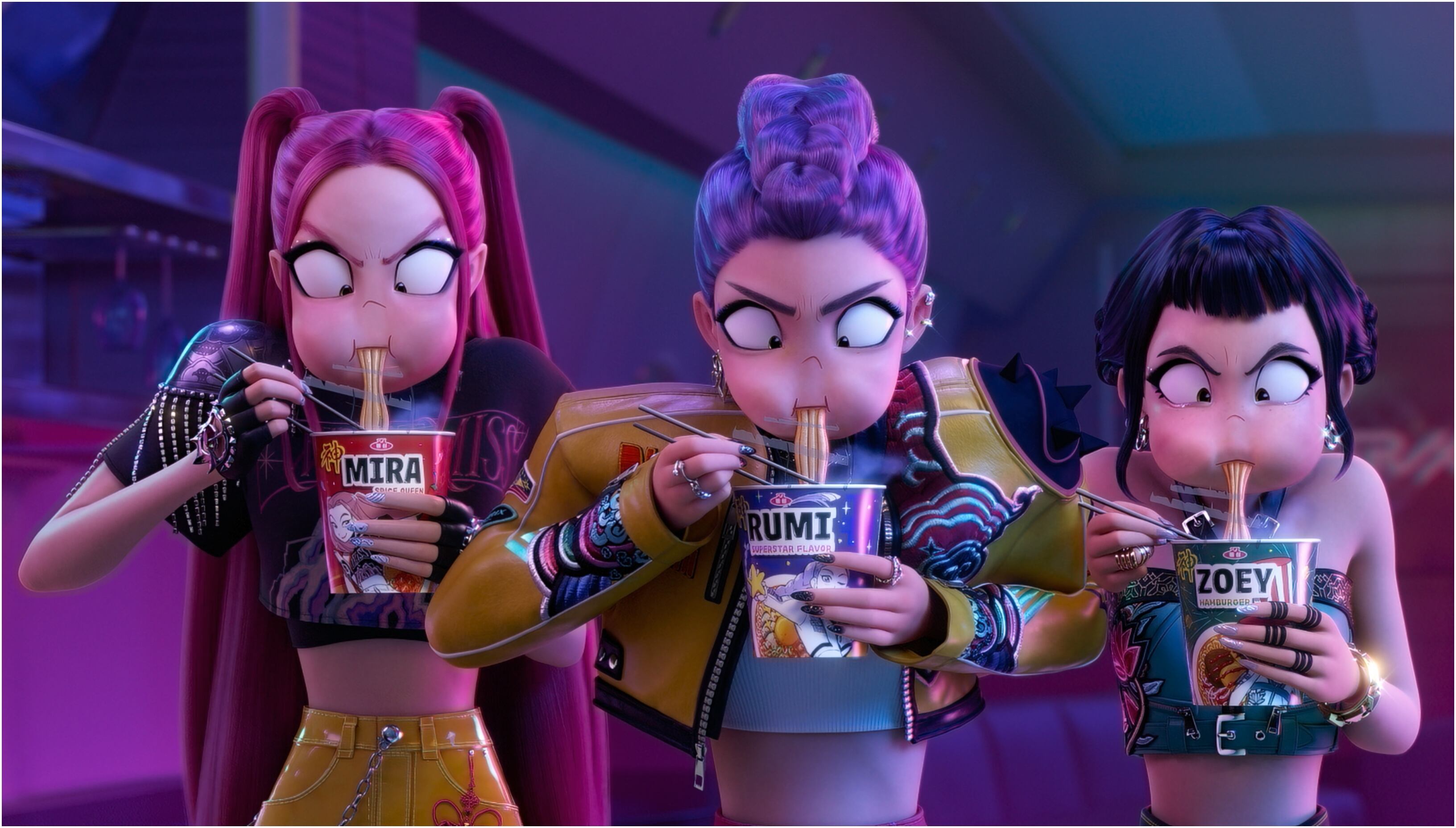 Dirigido por Maggie Kang e Chris Appelhans, ‘KPop Demon Hunters’ mistura o melhor dos dois mundos: a estética e a narrativa de um anime (ou, como é conhecido na Coreia, Aeni) com a energia vibrante do K-pop. A trama acompanha Huntr/X, um grupo feminino que não só arrasa no palco com coreografias impecáveis, como também enfrenta demônios secretamente, tornando-se heroínas sobrenaturais.