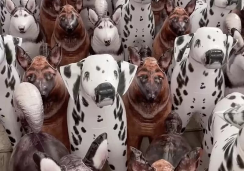Existe apenas um cão de verdade neste vídeo e não é fácil de encontrar. Você consegue?