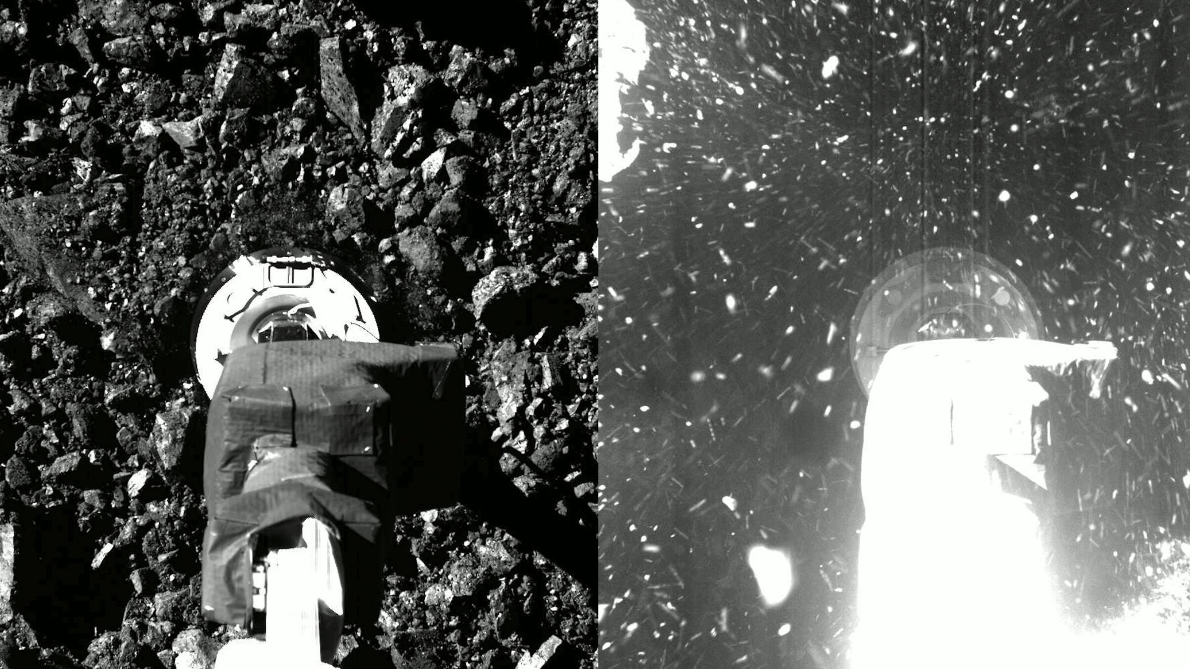 Os cientistas da missão analisaram o volume de detritos visíveis nas imagens antes e depois do local da amostra, apelidado de “Nightingale”. Eles também analisaram os dados de aceleração coletados durante o pouso da espaçonave.