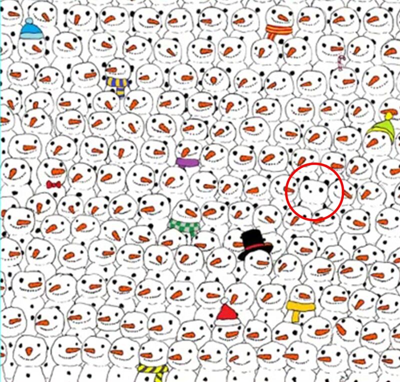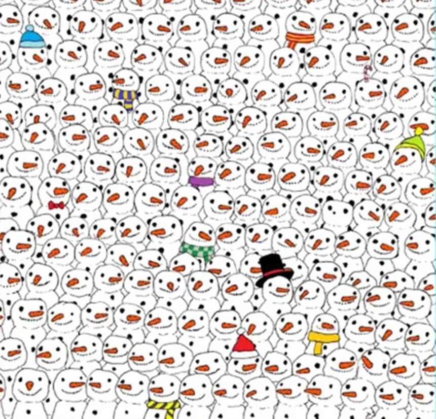 Para começar bem a semana, que tal um desafio visual para exercitar o olhar? Nesta imagem existe um panda escondido entre dezenas de bonecos de neve.