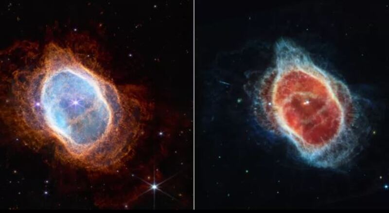 Antes de mais nada, como lembrado pelo portal FayerWayer, “nebulosas são regiões do meio interestelar compostas por gases, como hidrogênio e hélio, e elementos químicos na forma de poeira cósmica”. Sobre a do Anel Azul, a agência espacial divulgou dois registros. Também conhecida como “oito rajadas” se refere a uma nuvem de gás em constante expansão ao redor de uma estrela moribunda.