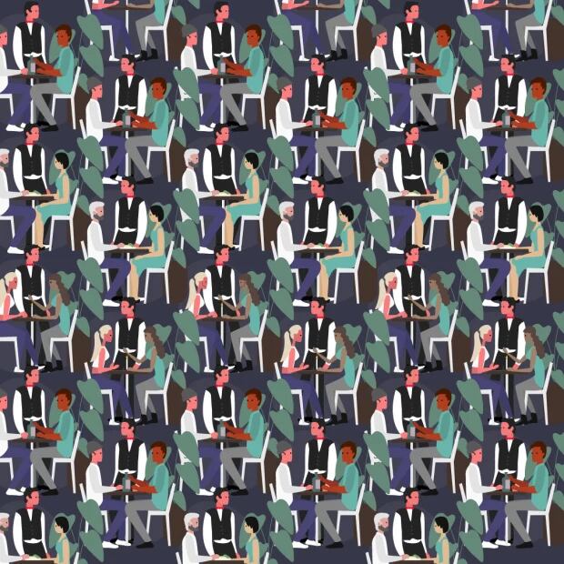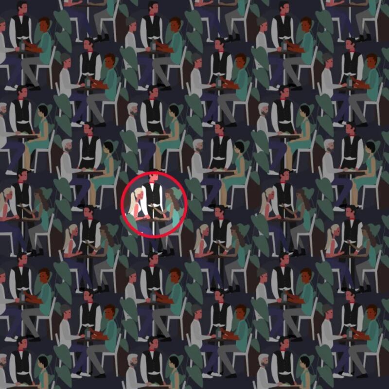 Você se considera muito observador? Hora de testar essa habilidade com este desafio visual: entre os clientes do restaurante dessa ilustração, existe um robô disfarçado.