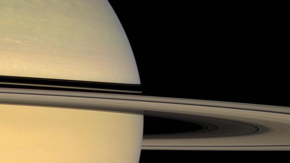 Como detalhado pela NASA, na imagem, o perfil de Saturno domina a imagem de forma longa. A parte do planeta que é visível parece lisa com listras claras de um tom dourado suave.