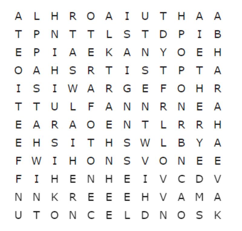Se concluiu o caça-palavras sem consultar o resultado, está de parabéns! Caso contrário, não se preocupe. Afinal, este não é um teste tão simples. Abaixo você confere a resposta do desafio: