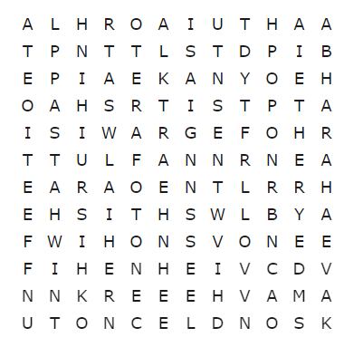 Se concluiu o caça-palavras sem consultar o resultado, está de parabéns! Caso contrário, não se preocupe. Afinal, este não é um teste tão simples. Abaixo você confere a resposta do desafio: