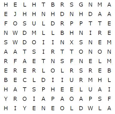 Se concluiu o caça-palavras sem consultar o resultado, saiba que fez um belo trabalho! Caso contrário, não se preocupe. Afinal, este não é um teste tão simples. Abaixo você confere a resposta do desafio: