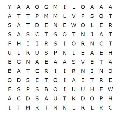 Se concluiu o caça-palavras sem consultar o resultado, saiba que fez um belo trabalho! Caso contrário, não se preocupe. Afinal, este não é um teste tão simples. Abaixo você confere a resposta do desafio: