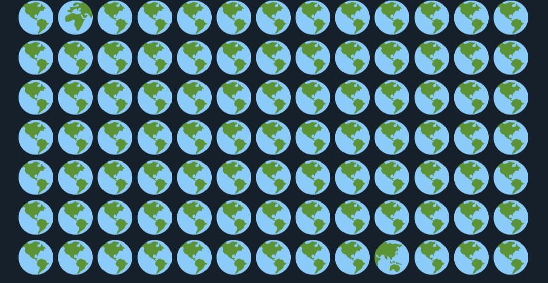 Acredita possuir um olhar aguçado e apurado? A tarefa a seguir consiste no seguinte: Há diversos emojis da Terra na figura, sendo necessário encontrar dois deles com ângulos diferentes. Veja que se parecem muito, dificultando sua resolução. Observe bem!