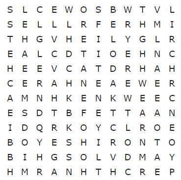 Se concluiu o caça-palavras sem consultar o resultado, saiba que fez um belo trabalho! Caso contrário, não se preocupe. Afinal, este não é um teste tão simples. Abaixo você confere a resposta do desafio: