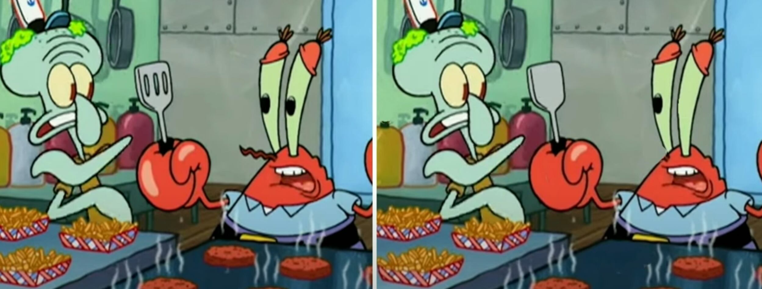 Você consegue encontrar os 7 erros escondidos nestas imagens do desenho animado ‘Bob Esponja’ rapidamente?