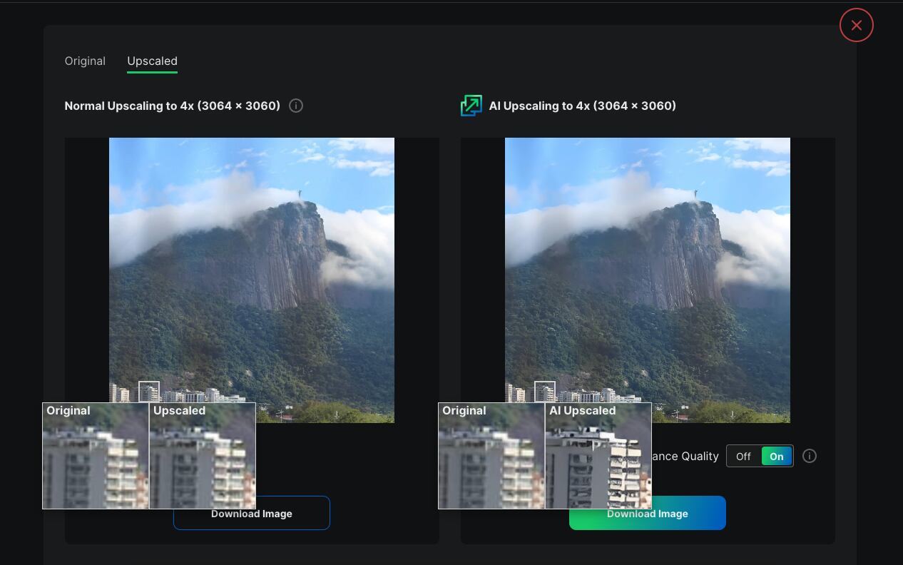 É importante lembrar de ativar o botão Enhance Quality, deixando em “On”. Depois, basta fazer o download.