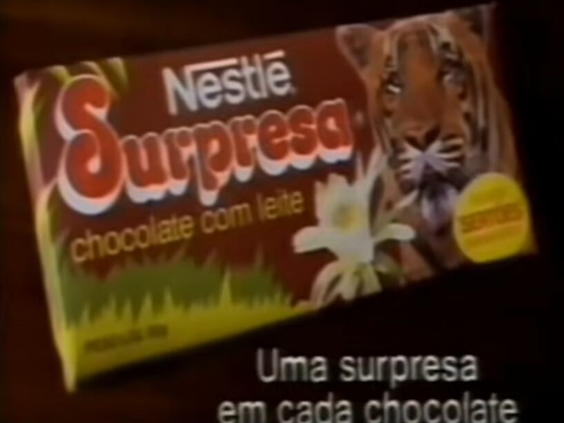 Lançado em 1983, o chocolate ‘Surpresa’ vinha com temas de animais, e além do sabor delicioso, as crianças poderiam se divertir com as cartas que vinham uma imagem dos bichos. Com o sucesso, a Nestlé, responsável pelo chocolate, lançou outras coleções, como ‘Dinossauros’, em 1993, e ‘Viagens Interplanetárias’, em 1997. Existia a possibilidade para aquelas pessoas que gostavam muito de colecionar as figurinhas trocando as embalagens por um álbum da coleção. O produto ficou por 20 anos nos mercados, até ser descontinuado em 2003.