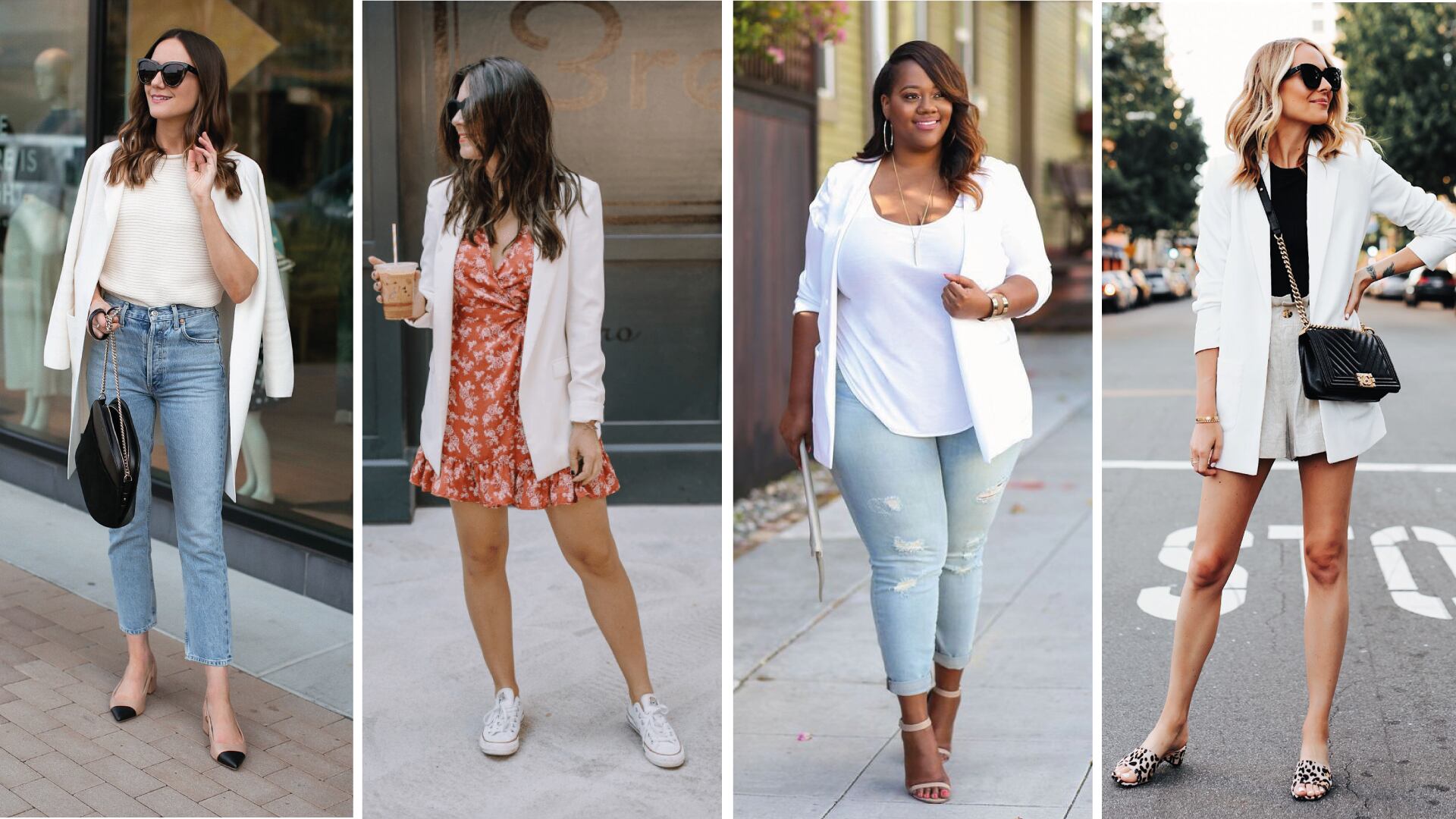 Combinado com um short jeans tradicional, ou um short pull-on, o blazer branco pode dar uma maior elegância a um look casual, seja para um evento diurno ou um encontro à noite.
