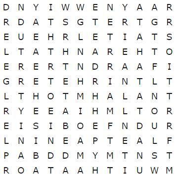 Se concluiu o caça-palavras sem consultar o resultado, saiba que fez um belo trabalho! Caso contrário, não se preocupe. Afinal, este não é um teste tão simples. Abaixo você confere a resposta do desafio: