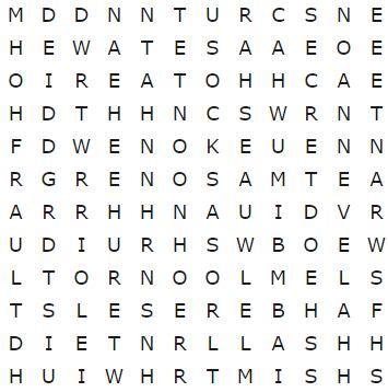 Se concluiu o caça-palavras sem consultar o resultado, saiba que fez um belo trabalho! Caso contrário, não se preocupe. Afinal, este não é um teste tão simples. Abaixo você confere a resposta do desafio: