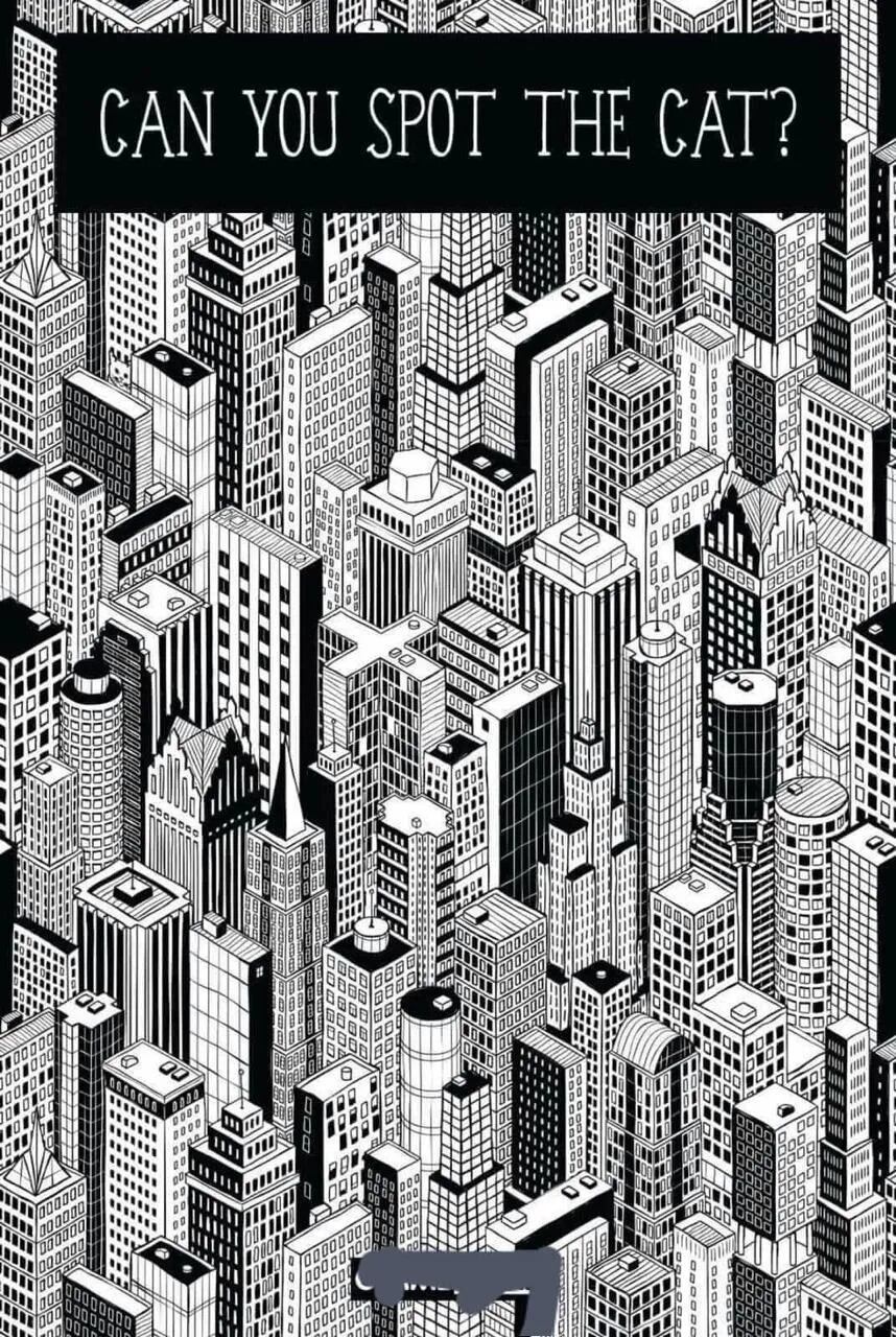 A inimizade entre cães e gatos é famosa e somente quem é do time dos cachorros consegue ter um olhar tão apurado capaz de encontrar o gato escondido entre os prédios neste desafio visual.