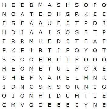 Se concluiu o caça-palavras sem consultar o resultado, saiba que fez um belo trabalho! Caso contrário, não se preocupe. Afinal, este não é um teste tão simples. Abaixo você confere a resposta do desafio: