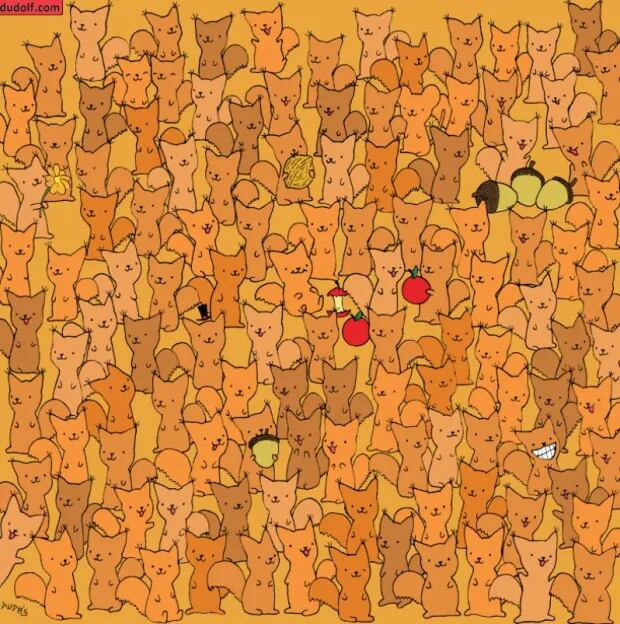 Tem ilusões de ótica que são verdadeiros desafios: nesta, por exemplo, existe um rato escondido entre dezenas esquilos. E sim, todos são laranjas - para dificultar.