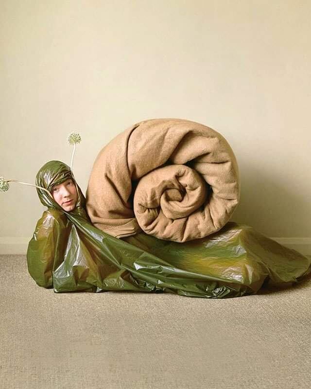 Nesta outra, a ideia é usar elementos de casa para dar vida à um caracol - que nunca teve pretensão de sair de casa:
