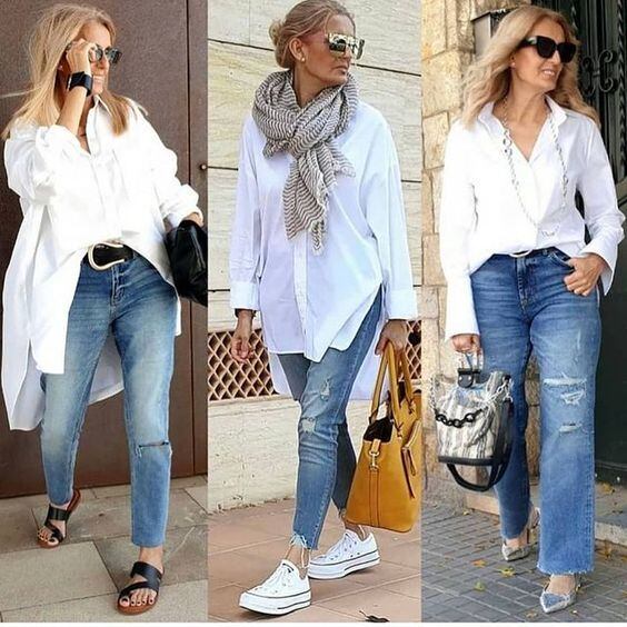 Nada mais elegante e estiloso do que vestir uma camisa branca com shorts jeans aos 50 anos, principalmente neste verão.
