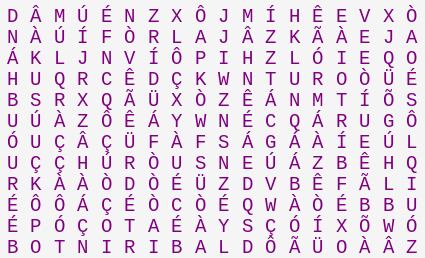 Se concluiu o caça-palavras sem consultar o resultado, saiba que fez um belo trabalho! Caso contrário, não se preocupe. Afinal, este não é um teste tão simples. Abaixo você confere a resposta do desafio: