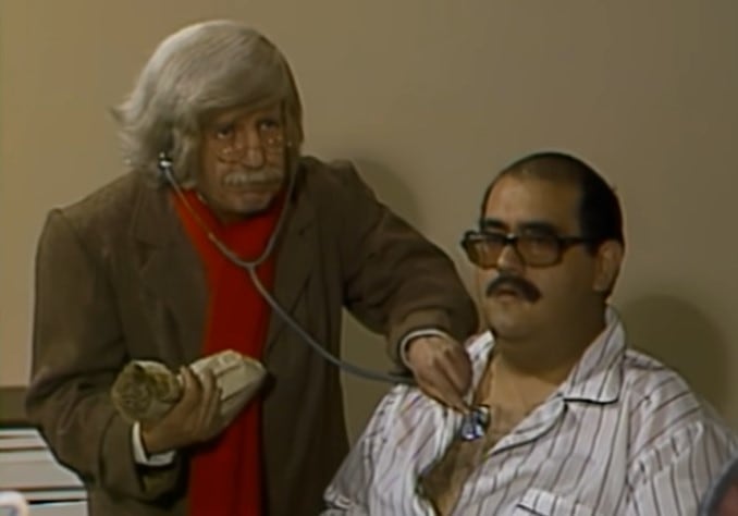 Ao longo do episódio, o Sr. Barriga também aparece na vila e acaba sofrendo um acidente, sendo levado ao hospital onde Chapatin trabalha, em um cenário nunca visto no Brasil na televisão brasileira.