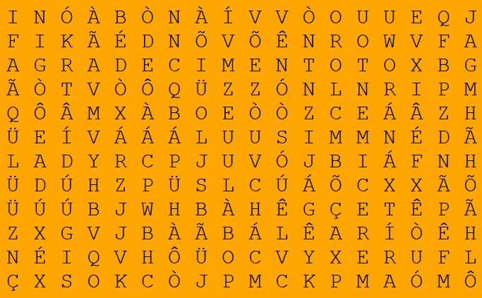 Para provar que você possui um olhar ágil, veja se consegue encontrar as palavras “merecimento” e “agradecimento” no caça-palavras a seguir. Confira: