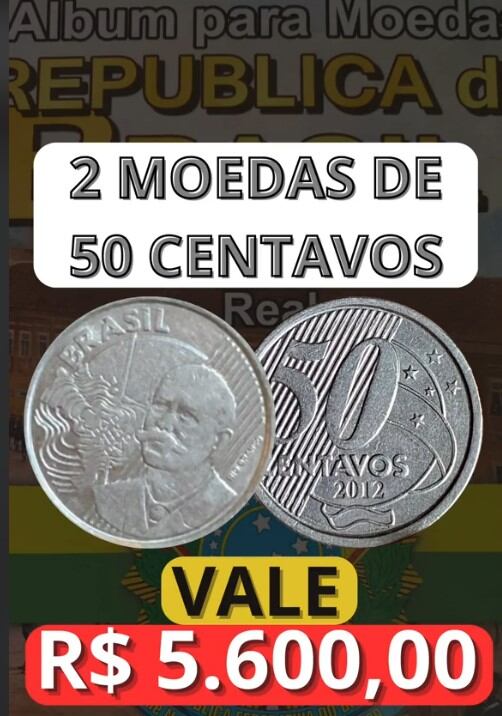 Se você der a sorte de ter alguma dessas moedas em mãos, saiba que você está segurando itens muito mais valiosos do que aparentam. A moeda de 50 centavos sem o 0 (zero), de acordo com o livro de moedas brasileiras raras, vale R$ 1.600,