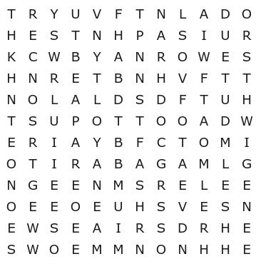 Caça-palavras podem não ser atividades tão fáceis quanto se imagina. Embora contem com uma dinâmica simples, os níveis de dificuldade dependem da proposta. Neste caso, existe um tempo limite estipulado. Será que consegue superar as expectativas?