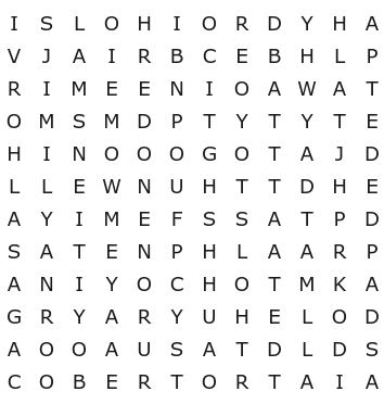 Se concluiu o caça-palavras sem consultar o resultado, saiba que fez um belo trabalho! Caso contrário, não se preocupe. Afinal, este não é um teste tão simples. Abaixo você confere a resposta do desafio: