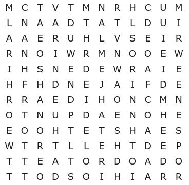 Como uma boa forma de entretenimento prático, os caça-palavras podem ser desenvolvidos em suas diversas formas. Neste artigo, apresentamos uma dinâmica simples, embora não tão fácil de ser resolvida. O nível de dificuldade deste teste de percepção se dá por conta do tempo limite estabelecido.
