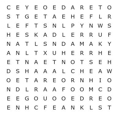 Se concluiu o caça-palavras sem consultar o resultado, saiba que fez um belo trabalho! Caso contrário, não se preocupe. Afinal, este não é um teste tão simples. Abaixo você confere a resposta do desafio: