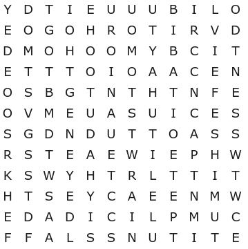 Se concluiu o caça-palavras sem consultar o resultado, saiba que fez um belo trabalho! Caso contrário, não se preocupe. Afinal, este não é um teste tão simples. Abaixo você confere a resposta do desafio: