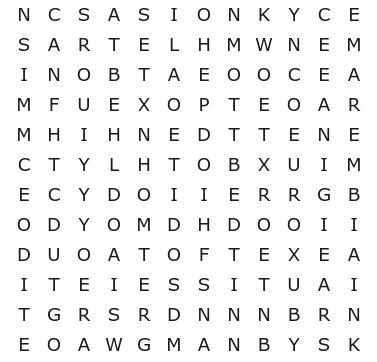 Se finalizou o caça-palavras sem consultar o resultado, está de parabéns! Caso contrário, não se preocupe. Afinal, este não é um teste tão simples. Abaixo você confere a resposta do desafio: