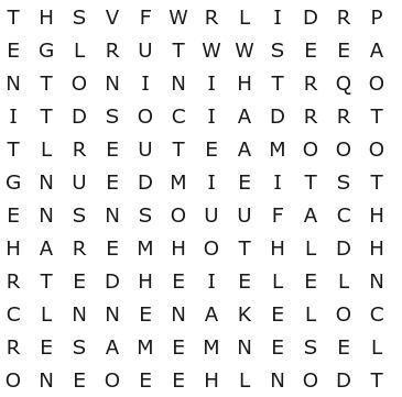 Se concluiu o caça-palavras sem consultar o resultado, saiba que fez um belo trabalho! Caso contrário, não se preocupe. Afinal, este não é um teste tão simples. Abaixo você confere a resposta do desafio: