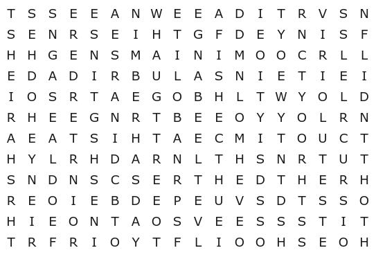 Se finalizou o caça-palavras sem consultar o resultado, está de parabéns! Caso contrário, não se preocupe. Afinal, este não é um teste tão simples. Abaixo você confere a resposta do desafio: