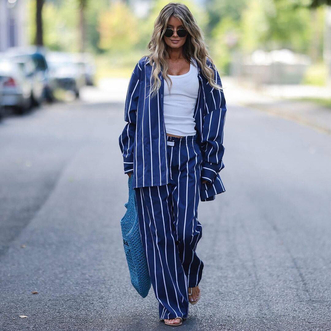 Conjuntos monocromáticos são sempre uma boa aposta. A tendência de double denim recebe uma nova interpretação este ano. Usar a mesma cor da cabeça aos pés cria um efeito de continuidade e alongamento.